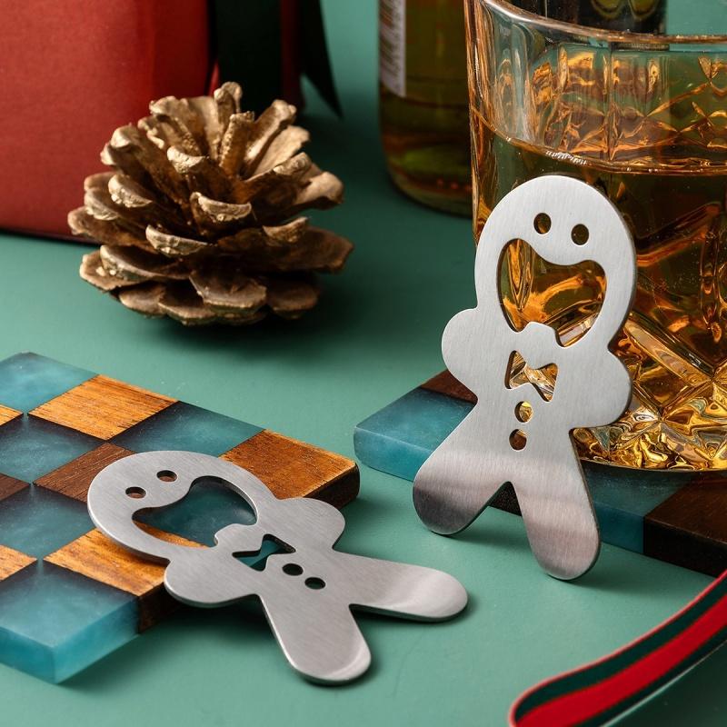 5pcs/1pc Stainless Steel Bottle Openers - Ideal for Beer, Soda, Kitchen & Holiday Decor (Christmas Gift), Gingerbread Design