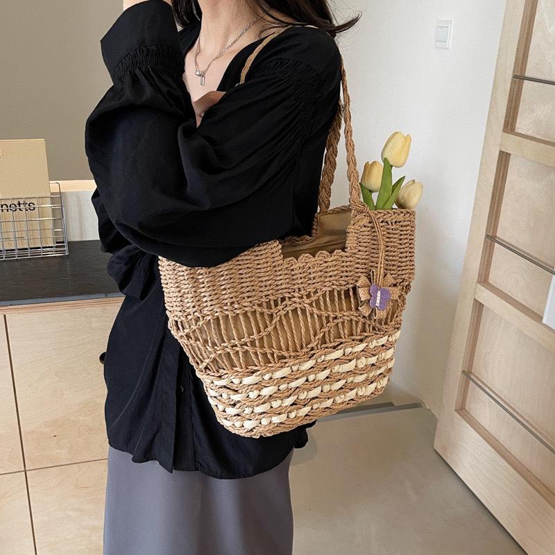 Bohemisk Etnisk Stil Vävväska - Tofs av Halm, Stor Kapacitet för Kvinnor