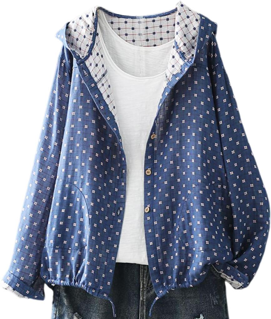 Neiman by Long Sleeve Gauze Dotted Mountain Girl Size Women's Hoodie, Double-Breasted, Print, Girl/Forest Style, M, Blue, 5S-N01-BLM