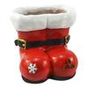 Jultomtens Stövlar Planter Röd och Vit Harts Jultomtens Stövlar Blomkruka med Spänne och Snöflingeaccenter Jul Bordsdekoration för Spiselhylla