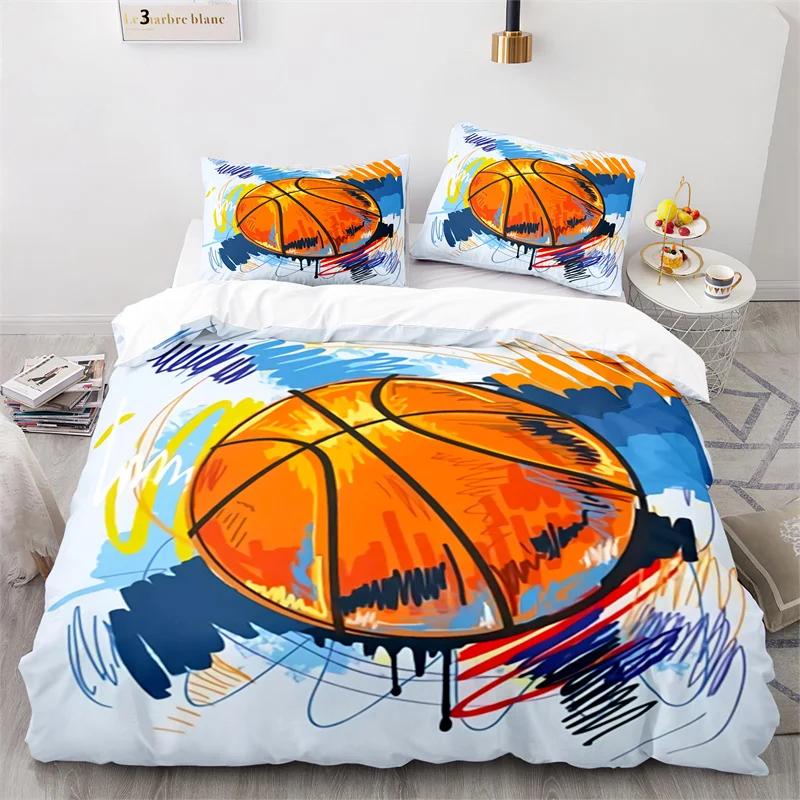 Pojkar Basket Sängkläder Set Sporttema 3D Ball Påslakan Full King För tonåringar Män Mikrofiber Konkurrenskraftigt Spel Täcken Cover