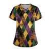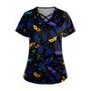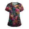 Dam Kortärmad Stagger V-ringad Tryck Ficka Torr-Topp