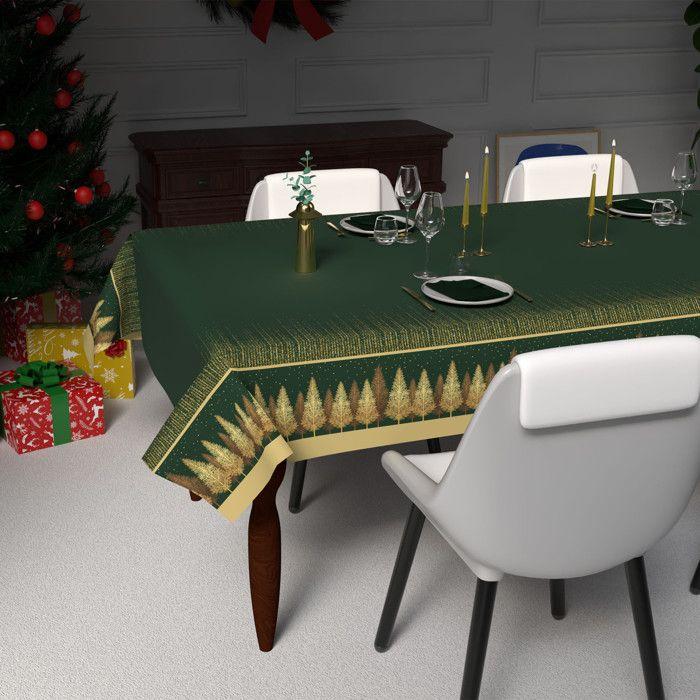 Nappe festive imprimée anti-tâches rectangle 140x300 cm FORET, par Soleil d'Ocre