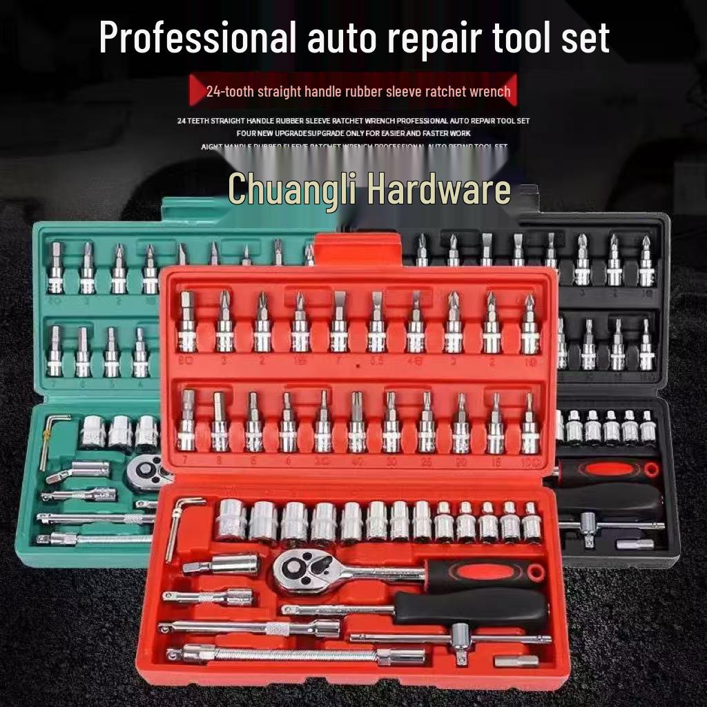 46-delat hyls- och spärrnyckelsats för bilreparation för hemmabruk