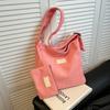Spring and summer new Korean version solid color large capacity bag 2025 new foreign style casual single shoulder simple solid color velvet cloth bag