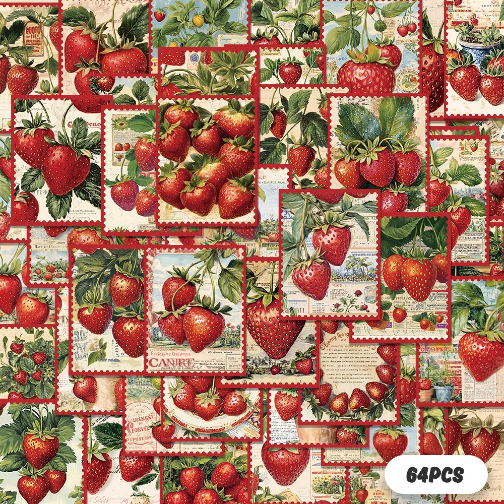 64 pcs,Vintage Strawberry Stamp Stickers,DIY Scrapbook,Mobile Phone,Skateboard,Luggage,Notebook,etc.,Holiday Gift or Reward Gift