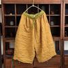 Johnature Women Vintage Wide Leg Pants Patchwork Pockets Solid Color Trousers Autumn Elastic Waist Loose Pants
