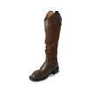 Version i kohud~ äkta läder staplade långstövlar retro tjock klack western cowboy stövlar dam ridstövlar v-ringade stövlar