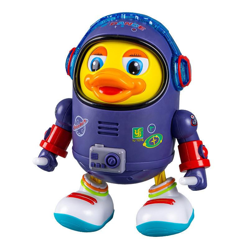 This electric dance space duck toy combines colorful plastic construction with flashing lights and sound, it operates using batteries and features lively movement and music to stimulate early development. Ideal for indoor play and fostering sensory exploration, it is easy to clean with a damp cloth.