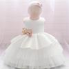 Fira ditt barns speciella milstolpar med denna charmiga ärmlösa klänning, perfekt för första födelsedagar och dop.. Denna morgonrock är tillverkad av en mjuk bomullsblandning och säkerställer komfort samtidigt som den erbjuder en elegant design.. Den har en stor, iögonfallande rosett och delikata blommiga accenter, vilket tillför en touch av nyckfullhet och sofistikering.. Denna klänning kombinerar skönhet och komfort, vilket får din lilla att känna sig som en riktig prinsessa på sin minnesvärda dag.