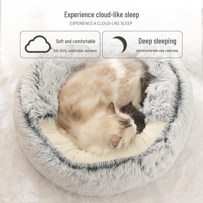 Kristall Sammet Husdjursbo: Mysig halvomsluten plyschsäng för djup sömn katter & hundar