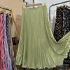 Flerfärgad chiffonkjol i koreansk stil med hög midja och plisserad prickig midilängd