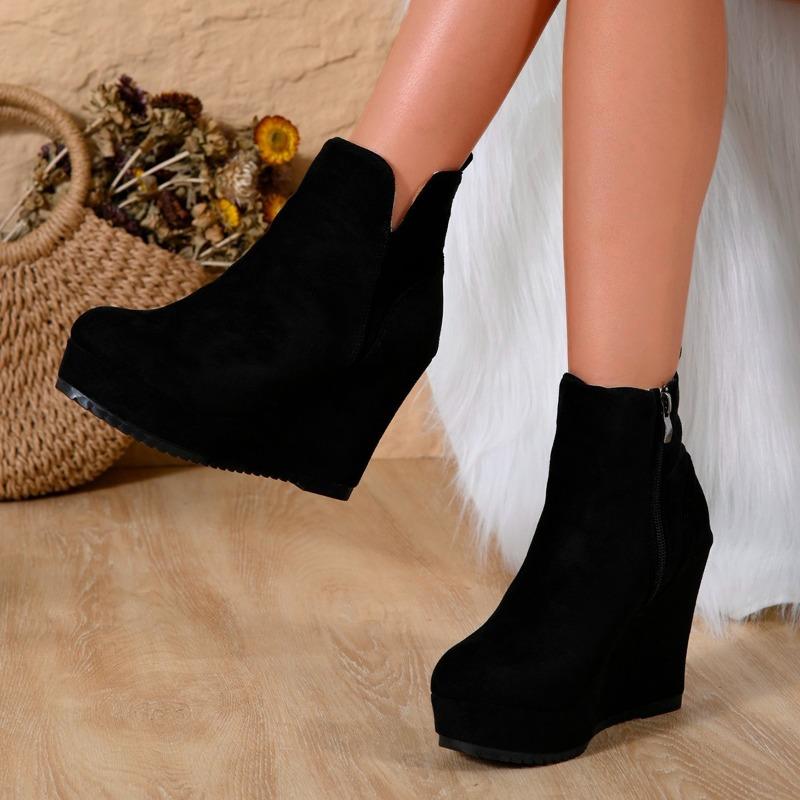 Damskor i mocka med kilklack, Ankelstövletter med sidodragkedja och plattform, Europeisk stil med tjock sula för kvinnor