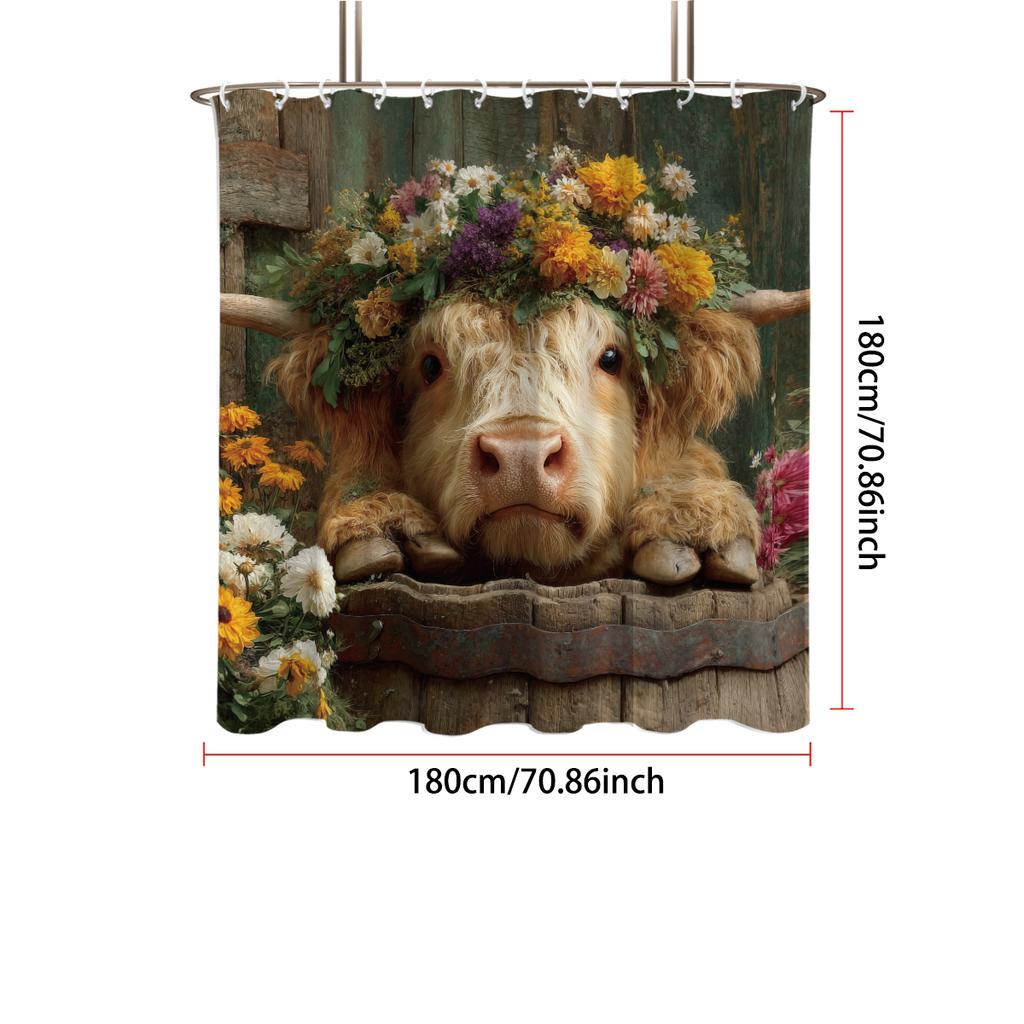 1 st Highland Cow Blomtryck Vattentät Duschdraperi Partition Sekretess Hängande Draperi 12 Krok Flera Storlekar Maskintvättbar