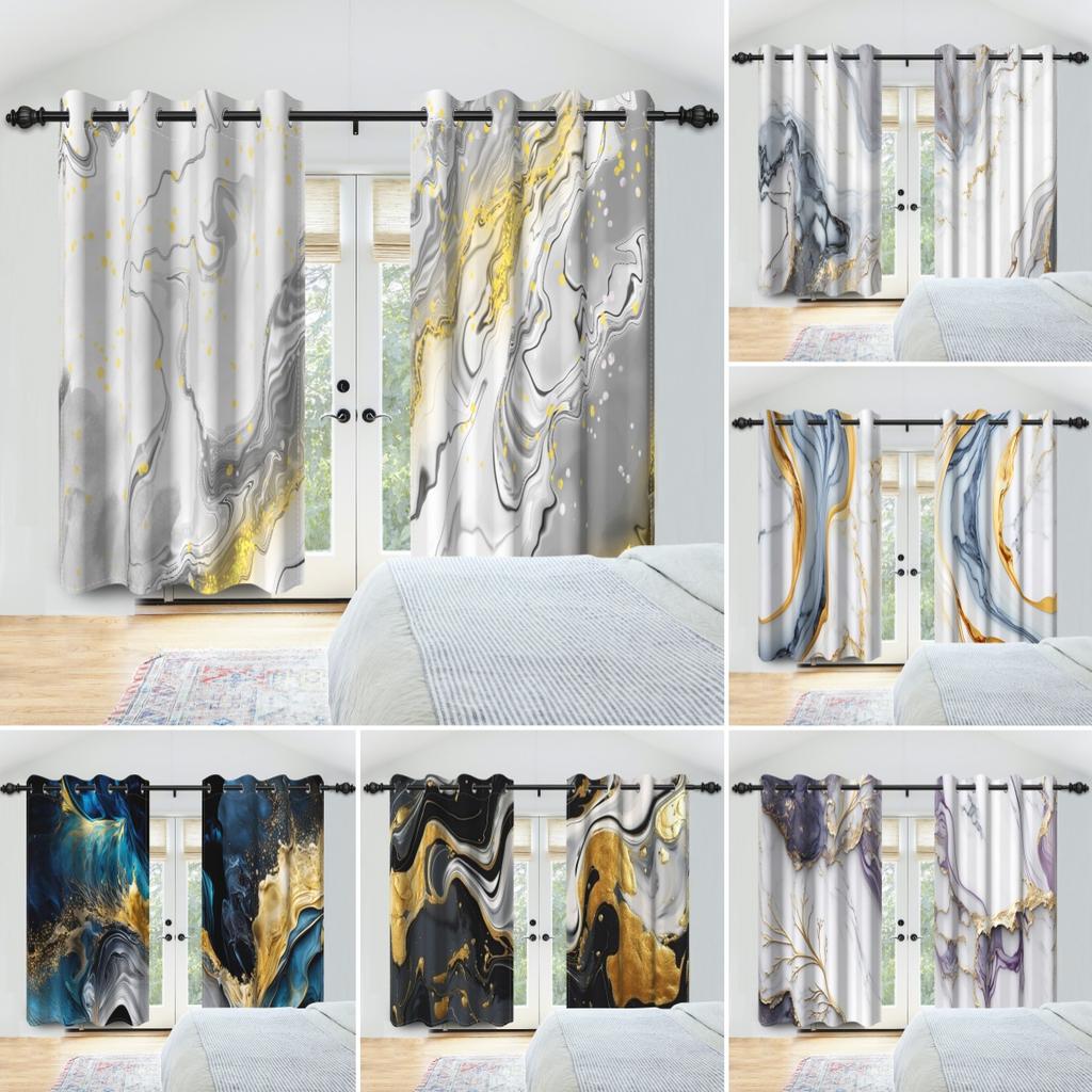 Marble Print Curtains Gold Silver Blue Purple Fluid Art Window Curtains Living Room Bedroom Modern Home Decor Blackout Curtain