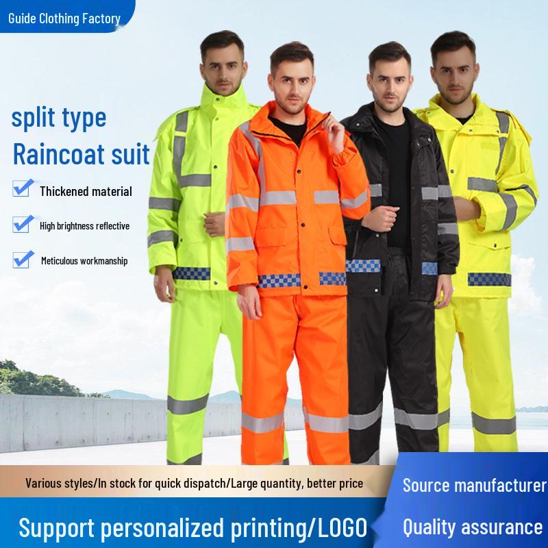 Reflekterande Trafikvakt Regnjacka & Byxor Set - 300D Oxfordtyg, Vattenavvisande, Slitstarkt, Anti-Kraftigt Regn, Utomhus-/Sanitetsanvändning.