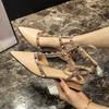 Sandaler dam sommar nya plattbottnade spetsiga nitar enspänne högklackade damskor tjock klack enskor