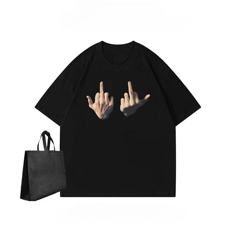 2025 Sommar Ny Långfinger Bomull Kortärmad T-shirt Herr och Dam Amerikansk Casual Rundhals Topp Par Sporttopp