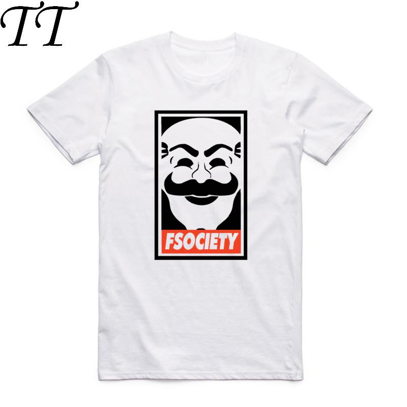 Asiatisk Storlek Män Kvinnor Tryck TV-program Robot T-shirt Sommar Vardaglig O-Hals Kort Ärm Mr Robot Fsociety Mask T-shirt HCP4091