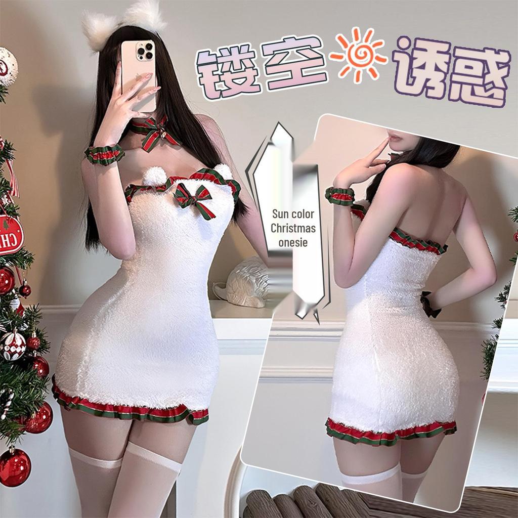 Golden Night White Christmas Cutout Hip-Wrap Dress - Pure Desire Maid Role Play