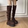 [One boot and two wears] Thick-soled inner height-increasing long knight boots for women's autumn and winter new over-the-knee thin stacking boots