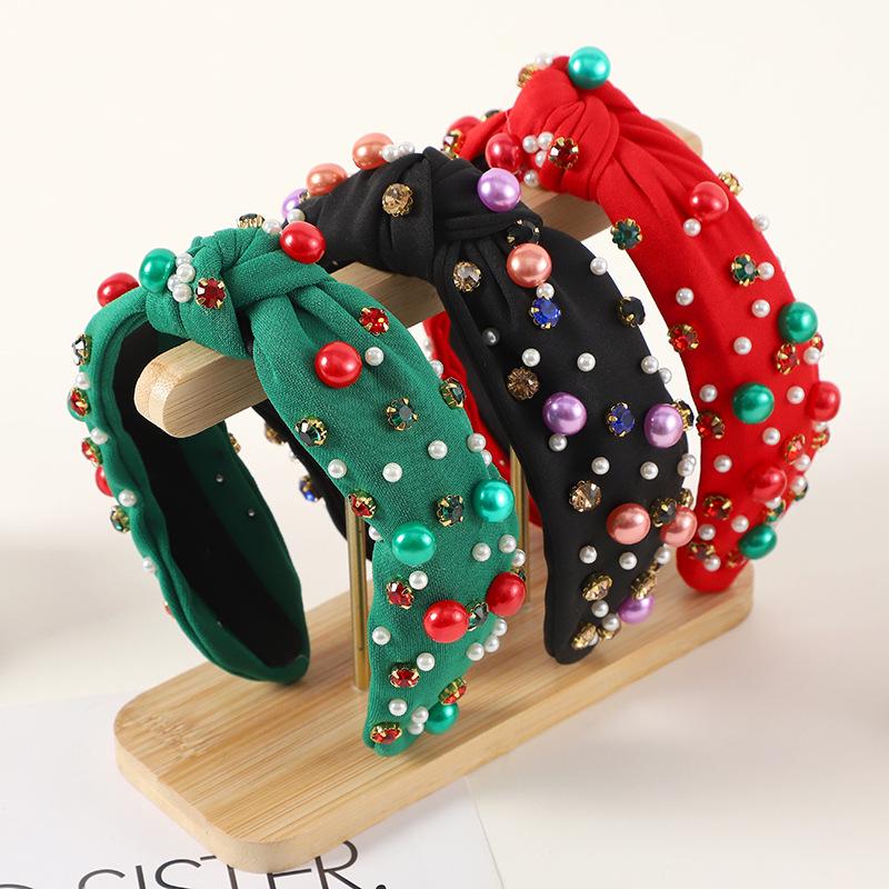 Ny Trendig Knuten Pärl Strass Jul Pannband