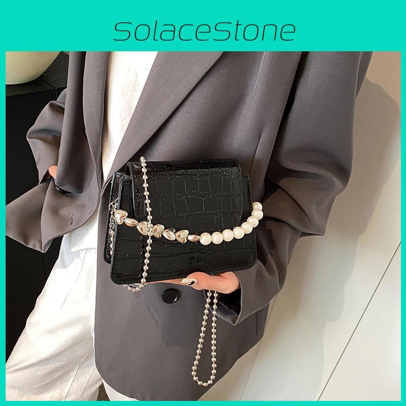Pearl Fashion Simulated Decoration Crocodile Pattern Women Casual Bag Square