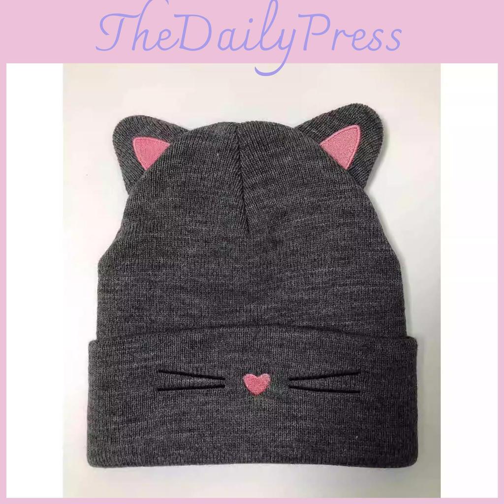 Cat Fashion Embroidered Beanie Warm Windproof Knitted Hat Outdoor Weather Cold