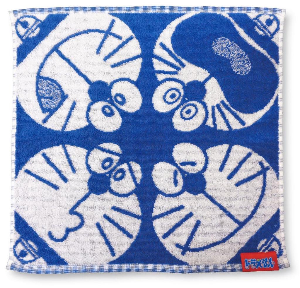 Kusunokibashi Monori Doraemon Gingham Jacquard Guest Towel, 34x34cm, Blue, A-90338-51-B