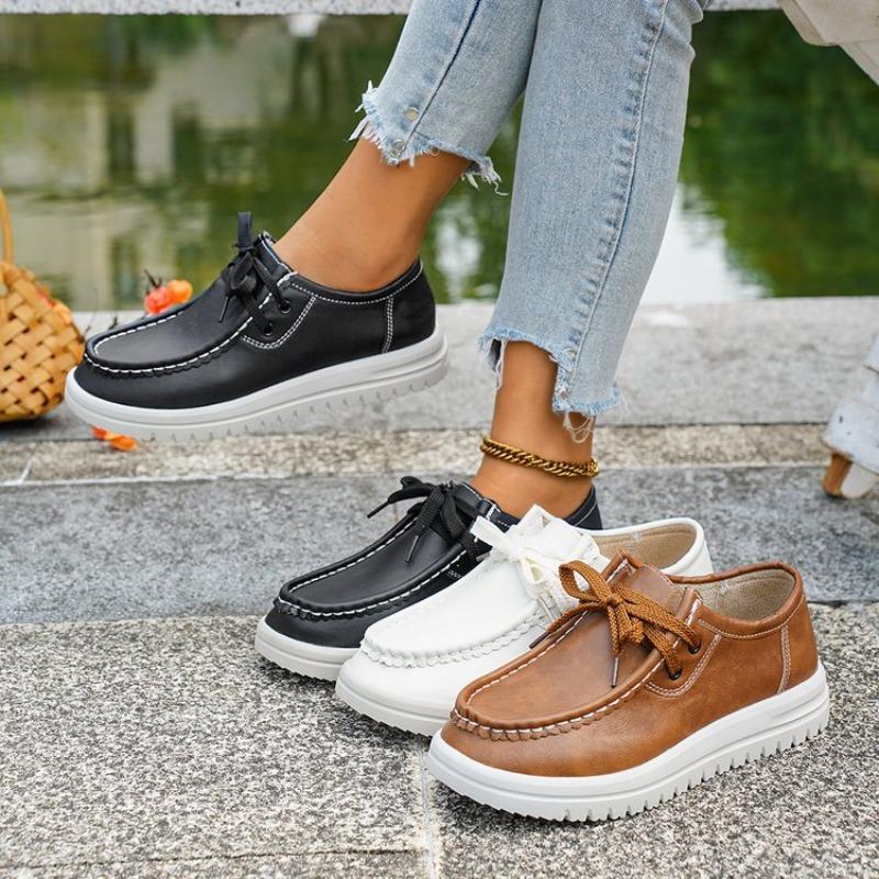 Damskor Plusstorlek EU-storlek Läder Loafers Höst Nya Platta Mångsidiga Brittisk Stil Läderskor
