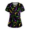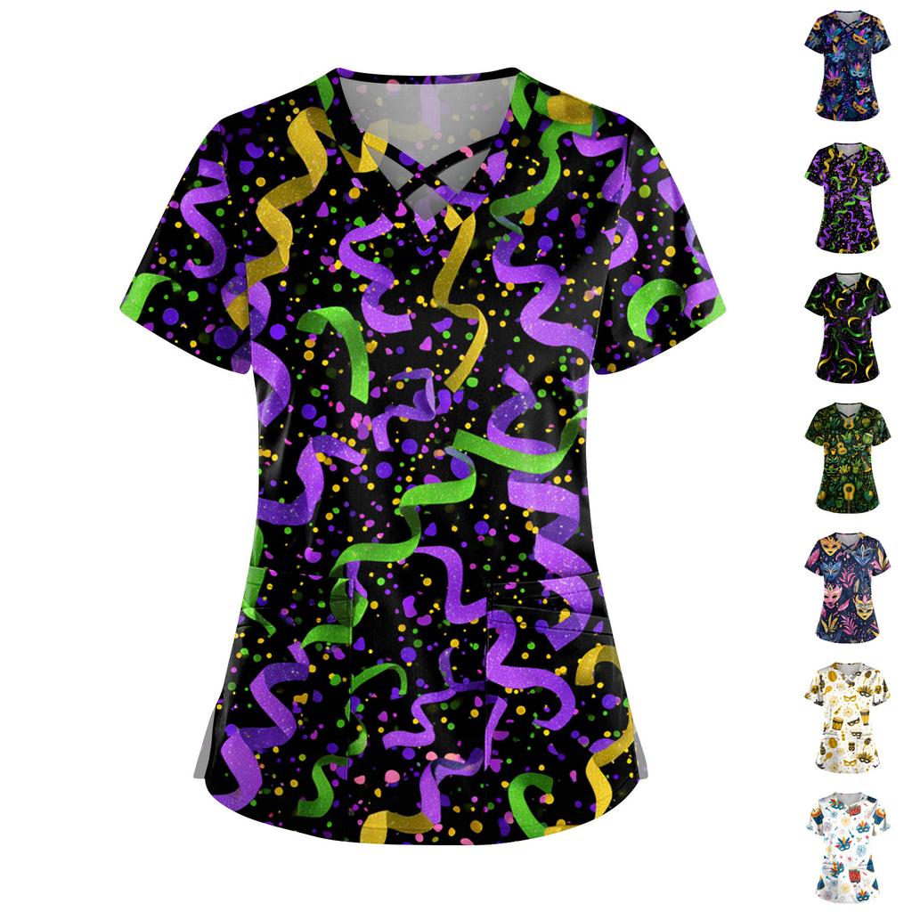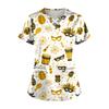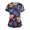 Dam Kortärmad Stagger V-ringad Tryck Ficka Torr-Topp