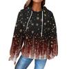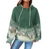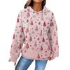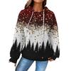 Dammode Lös Pullover med Huva Långärmad Rutig Sweatshirt med Dragsko, Nedhasad Axel, Ficka, Jultryck Topp