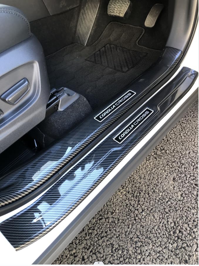 MEKOMEKO Set med tröskelskydd för den nya Toyota Corolla Sida och Steg och Interiör Tillverkade av ABS Lättkompatibla med Corolla Cross 2021 Maj Fiber