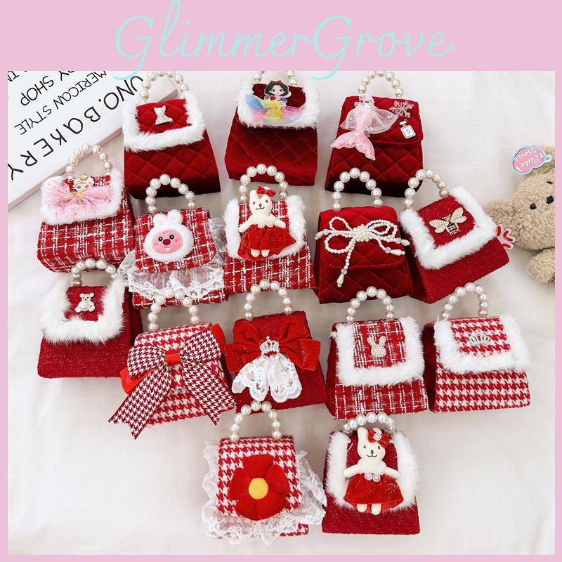And Stylish Cute Red Pearl Handbag For Girls Featuring Adorable Butterfly Bow Accent
