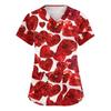 Dam Söt Rosett Tryckt Arbetskläder V-ringad Dubbelt Lager Fickor Basic Kortärmad Topp Pullover