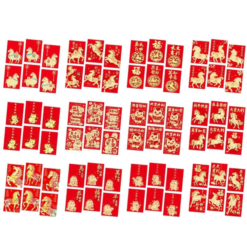 6PCS Red Envelopes With Horse Illustrations Paper New Year Gifts Money Holder for Birthday Wedding Celebration