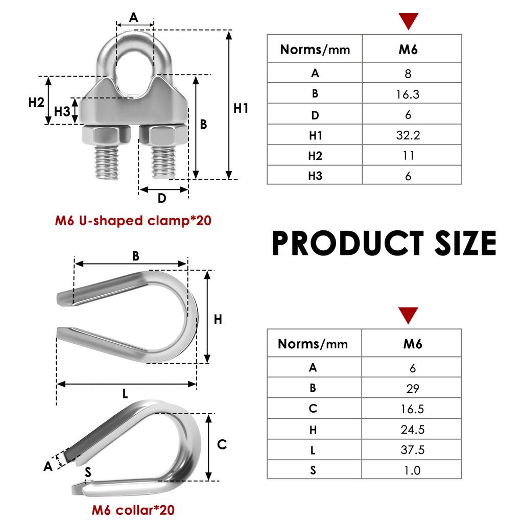 40/13PCS M3/M5/M6 Stainless Steel Cable Clamp U-Bolt Bow Shape Wire Rope Clamp with Cable Thimble for Wire Rope Clothesline