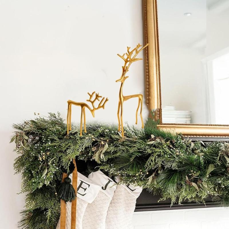 Tillverkad av förstklassig metall med en lyxig guldfinish, lyfter denna renstaty juldekorationerna samtidigt som den löser hållbarhetsproblem med ömtåliga plastprydnader genom sin robusta konstruktion.
