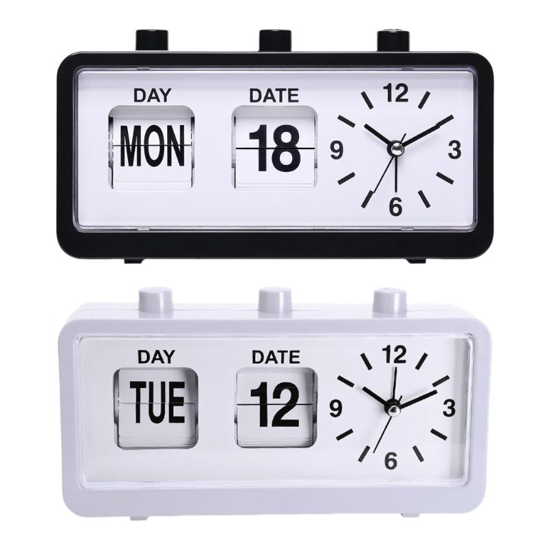Classical Retro Mechanical Alarm Clock with Manual Flipped Calendar Date Day Time Display for Living Room or Office