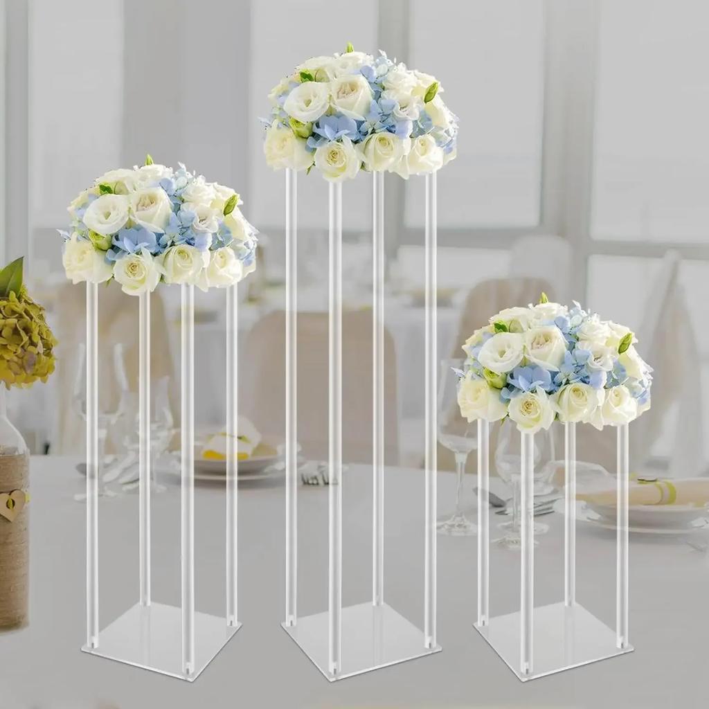 3Pcs High Clear Flower Stand, Rectangular Acrylic Flower Column, Removable Geometric Flower Shelves for Birthday Parties