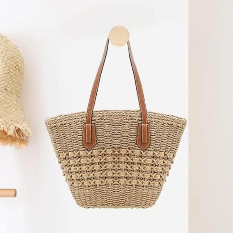 Shoulder straw bag Lazy wind handwoven bag Large capacity tote bag Women's vacation vegetable basket Beach bag