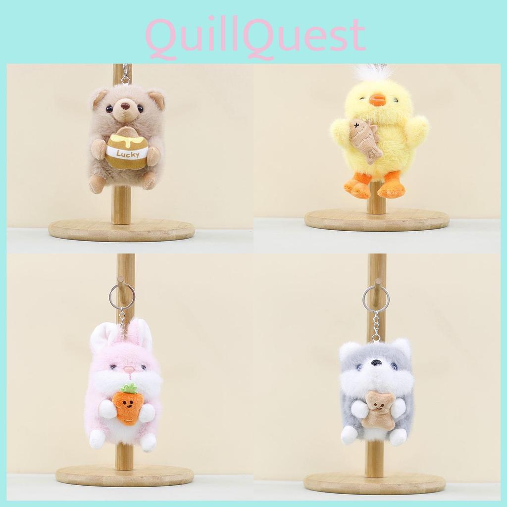 Adorable Cartoon Dog Plush Keychain Soft Toy Cute Chick Rabbit Bear Keychain Doll
