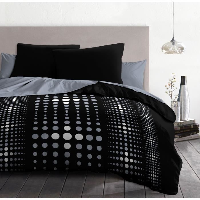 Parure de couette microfibre Steevy - 1 housse de couette 240x260 cm + 2 taies 63x63 cm - Noir - HOME LINGE PASSION