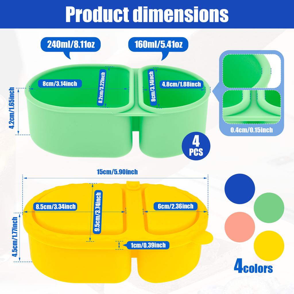 4 Pcs Snack Container Silicone Double Compartment Sauce Container with Lid Collapsible Food Storage Containers Kitchen Accessory