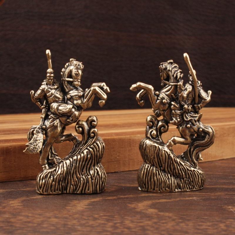 Hemdekoration Hantverk Mässing Kinesisk Lyckogud Ridande Häst Guan Gong Staty Tillbehör Koppar Kontorsbordsdekor