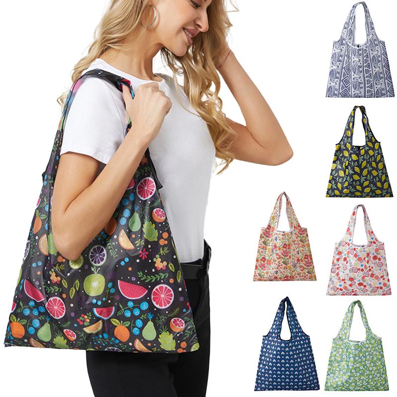 1Pc Shopping Bags Recyclable Polyester Washable Large Capacity Foldable Eco-friendly Grocery Tote Pouch Groceries