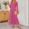 Dam prickig tryckt långärmad bekväm lös klänning, elegant klänning