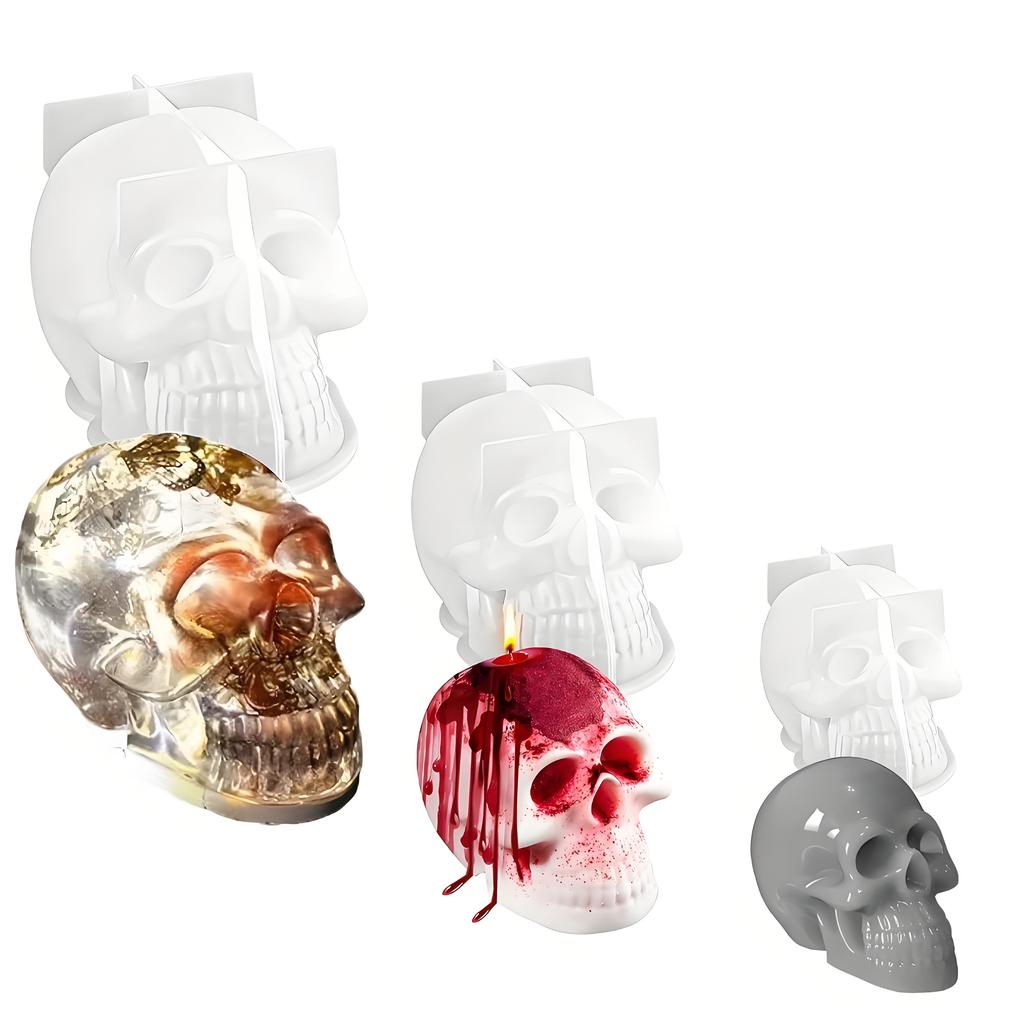 Set med Stora + Mellanstora + Små 3D Skalle Hartsformar, användbara för Gjutning av Tvål, Lera, Ljusvax, Halloween Hemdekoration