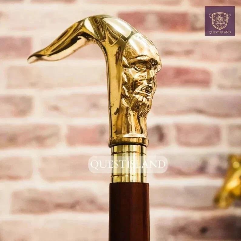 Old Man Handle Brass Wooden Victorian Foldable Cane Collectible