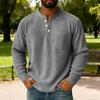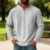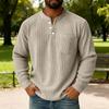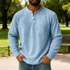 Men's Solid Color Corduroy Three-button Collar Men's Long-sleeved Shirt